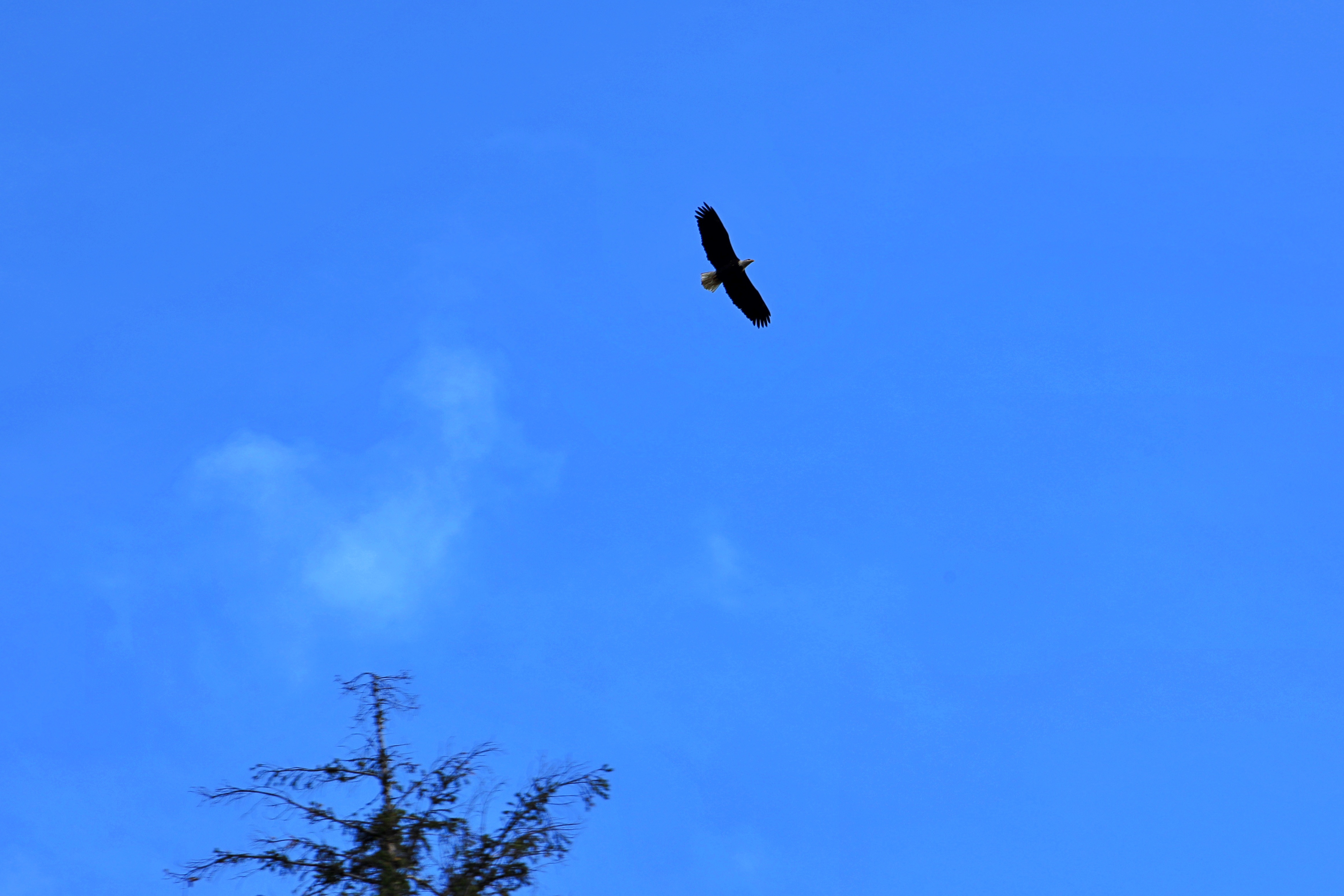독수리 4 마리를 보았는데, 근처에 독수리 둥지가 있는지 깩깩대며 머리 위를 맴돕니다. 확대해 보니 흰머리 독수리입니다.
