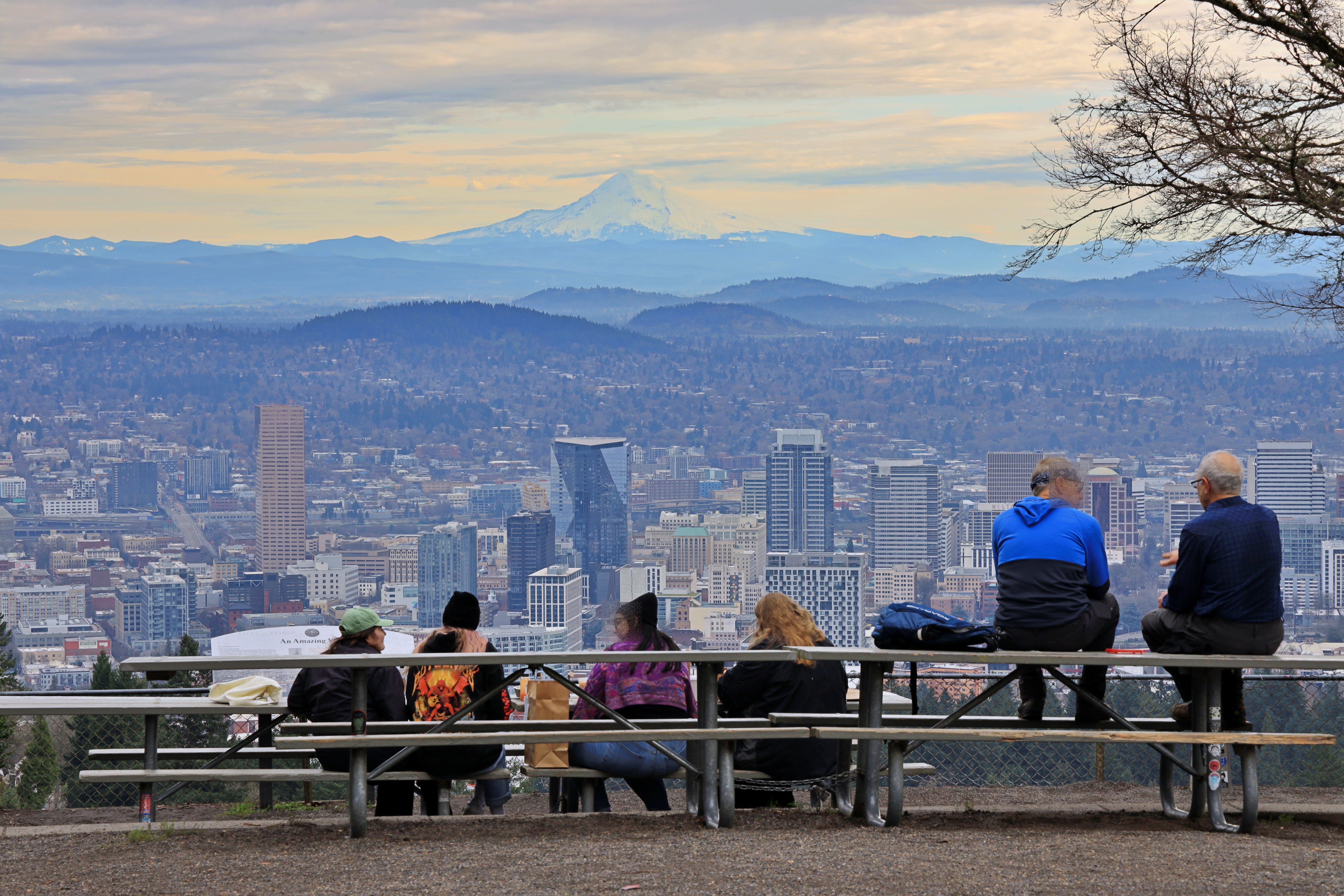 산 위에서 보는 포틀랜드 시내입니다. 뒤에 보이는 산은 Mount Hood 일 테고요.