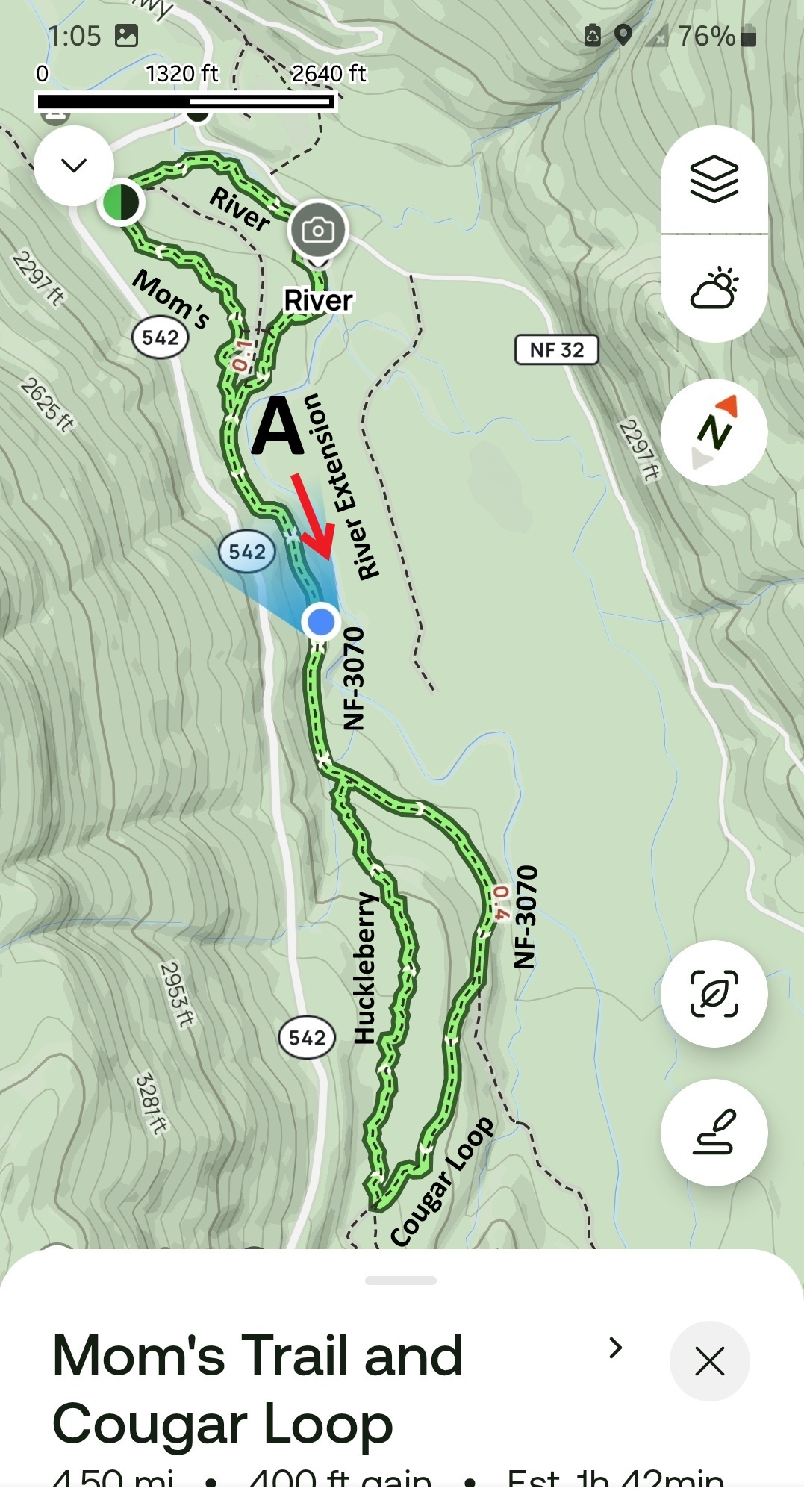 (All Trails 앱의 Mom's Trail and Cougar Loop를 참조하면 됩니다.)
