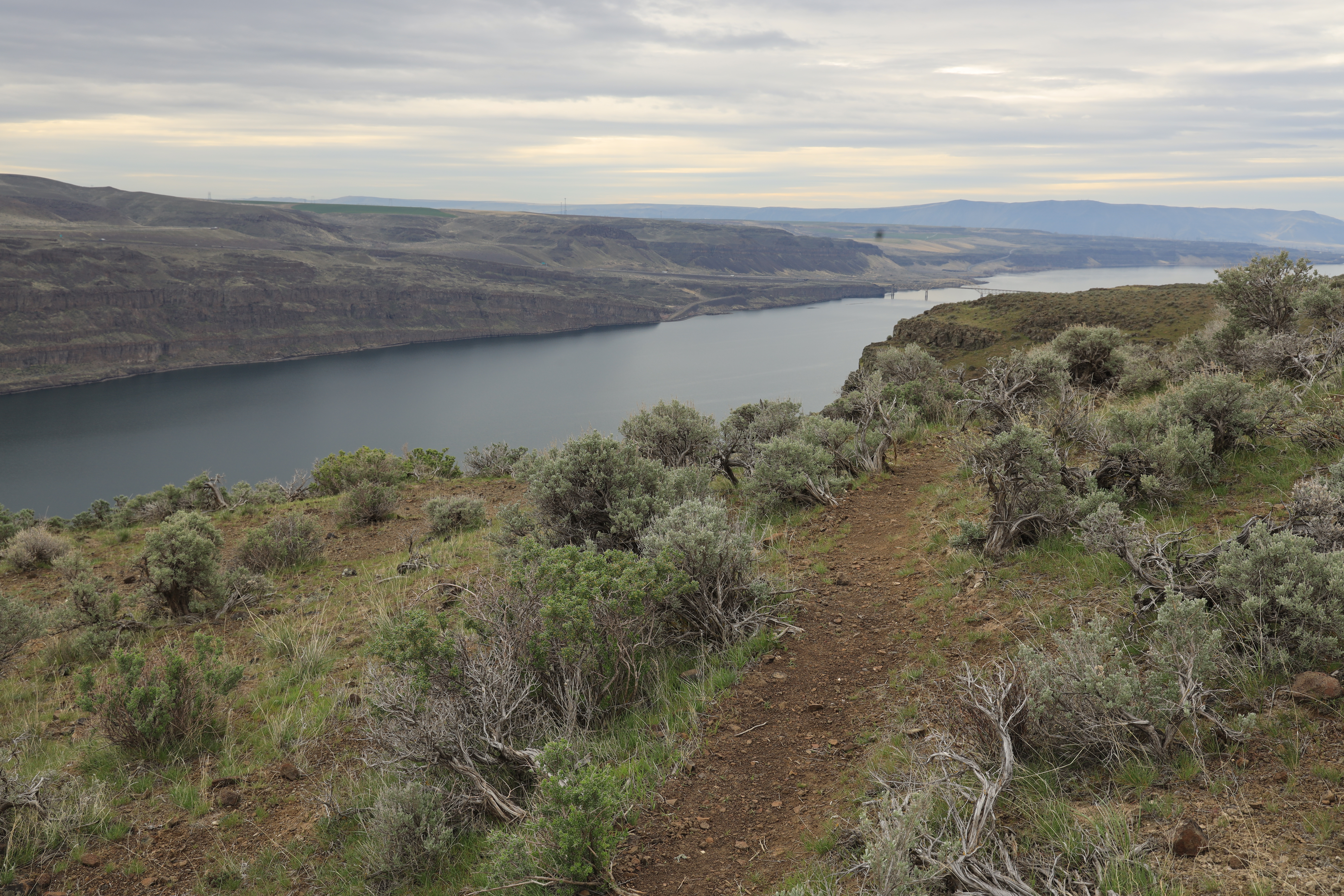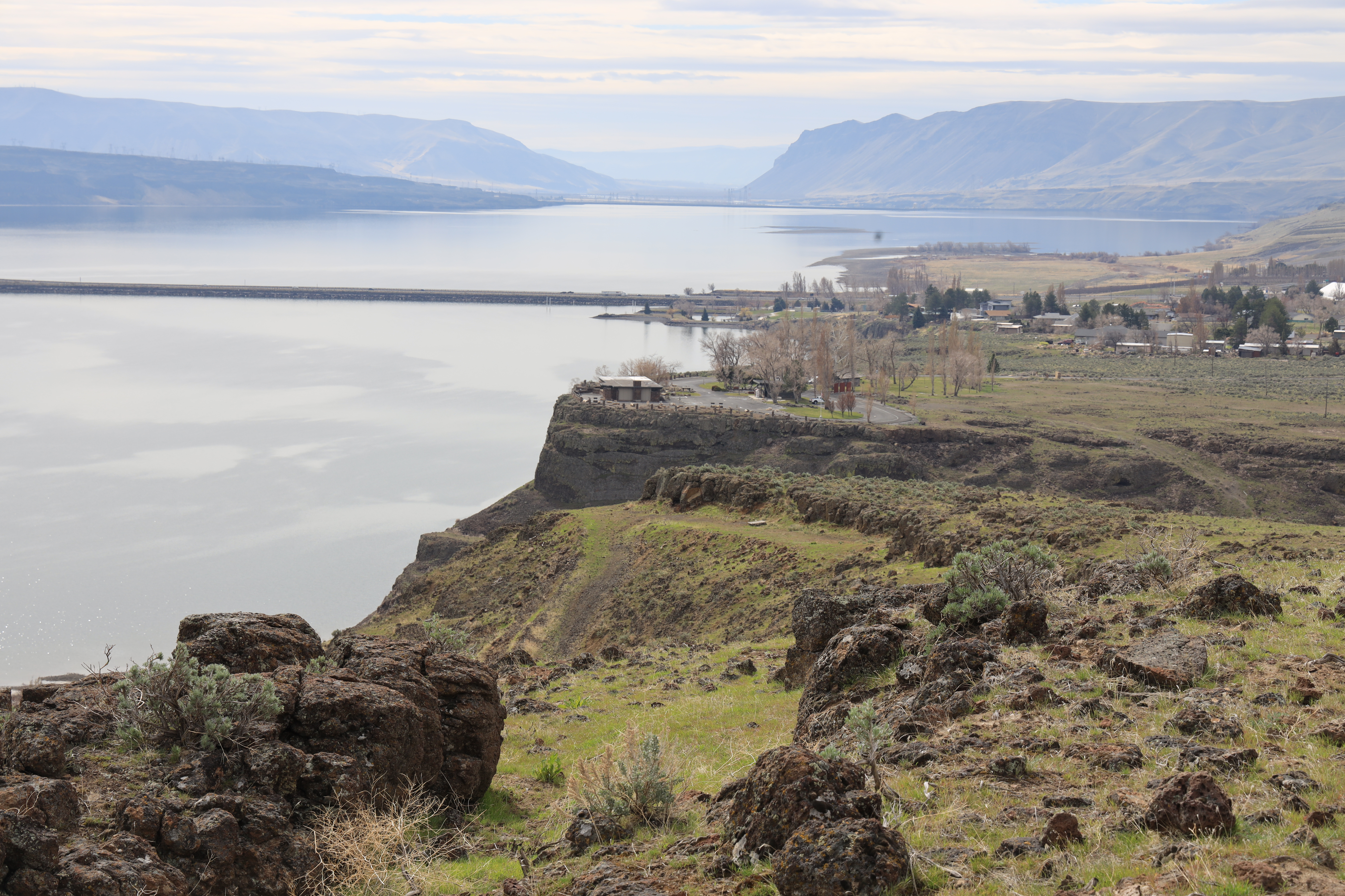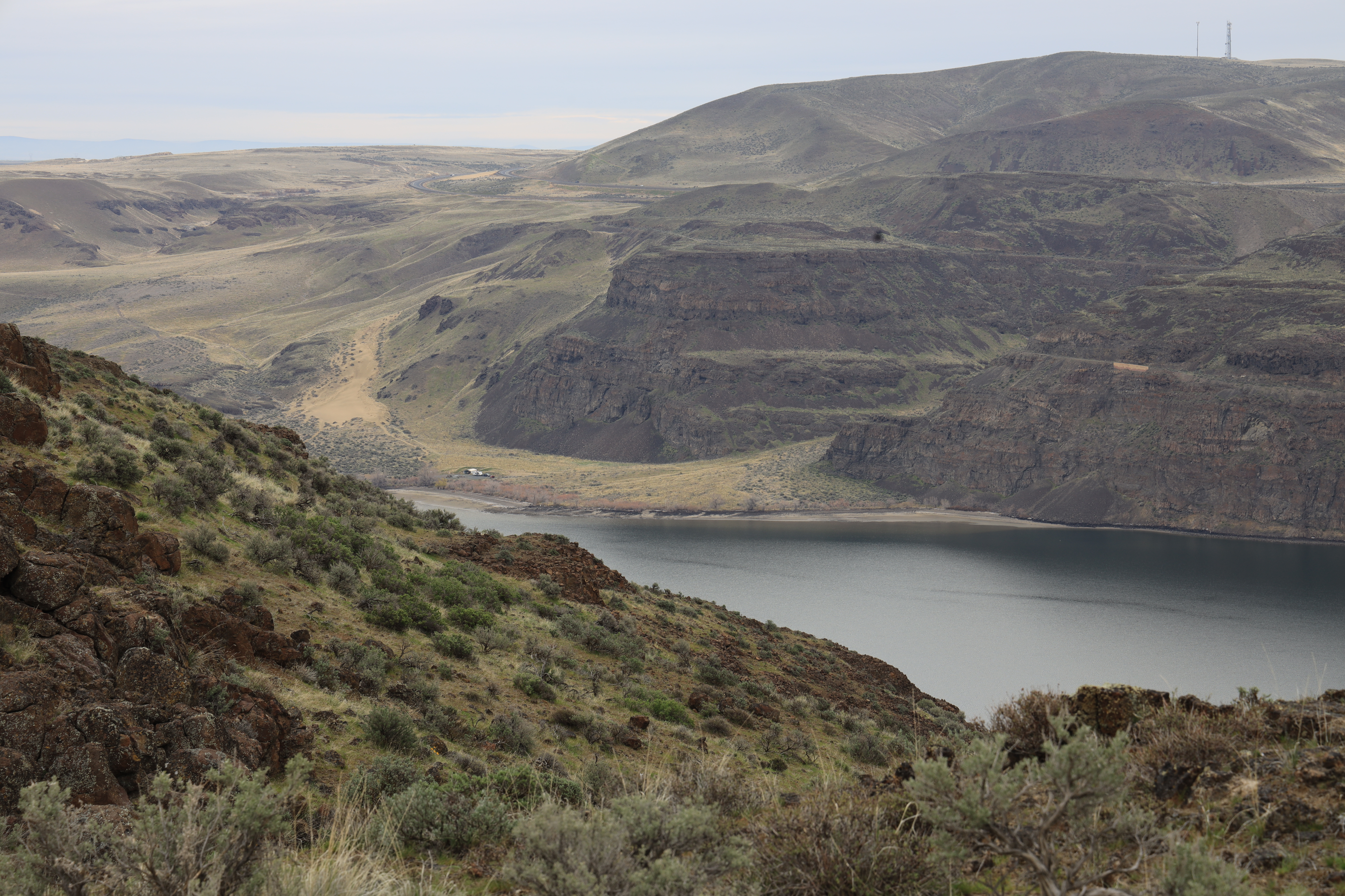산에 비가 와서 사막으로 갔습니다. 돌이 된 나무를 보러 그 멀리까지 가는 것은 그렇고 비 오는 날 갈 곳이 마땅치 않으면 좋은 대안이 될 수 있는 곳입니다. 컬럼비아 강 주변의 경치가 좋지만 그늘이 전혀 없어 여름에는 산행하려면 힘들겠네요.