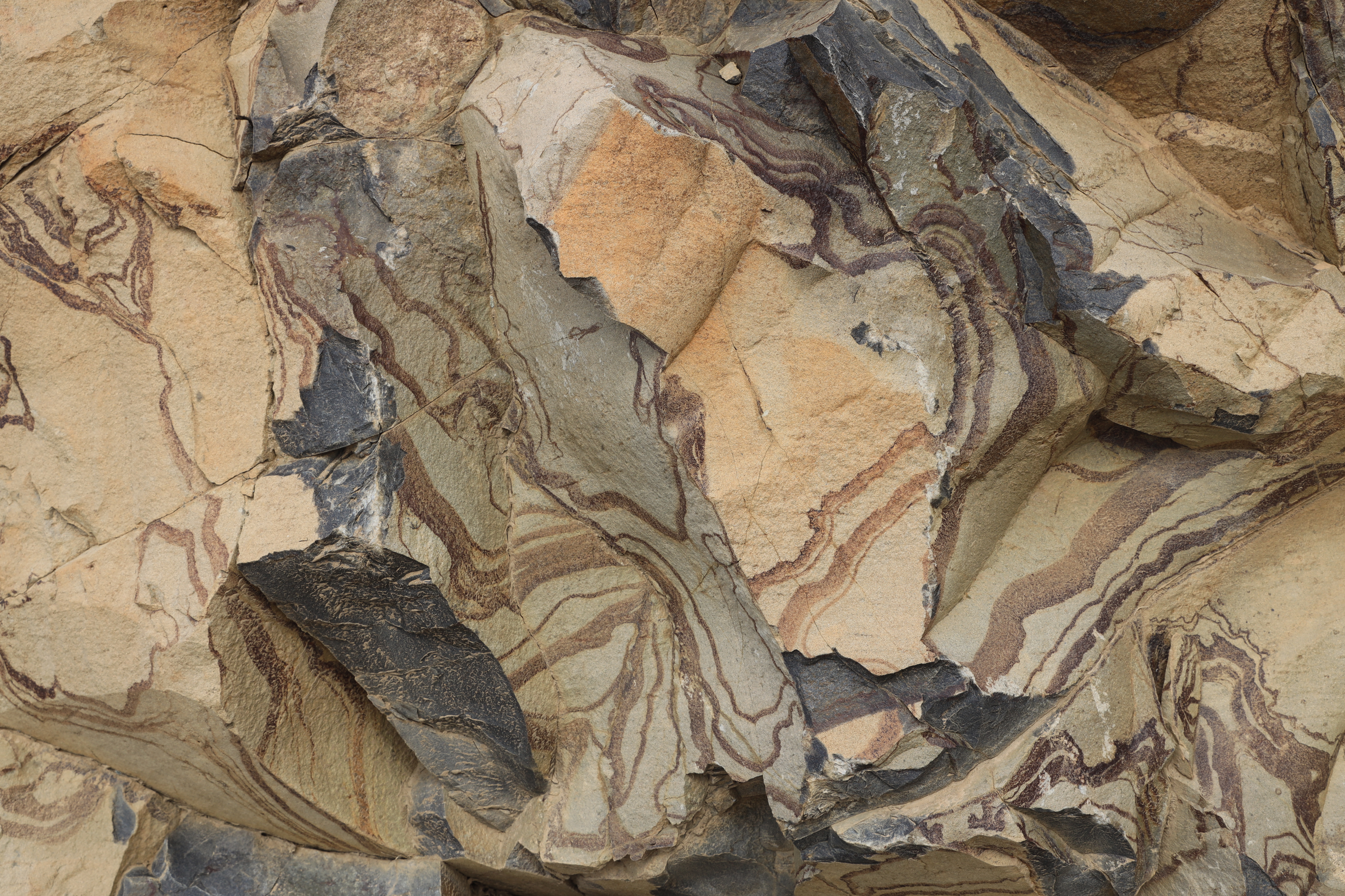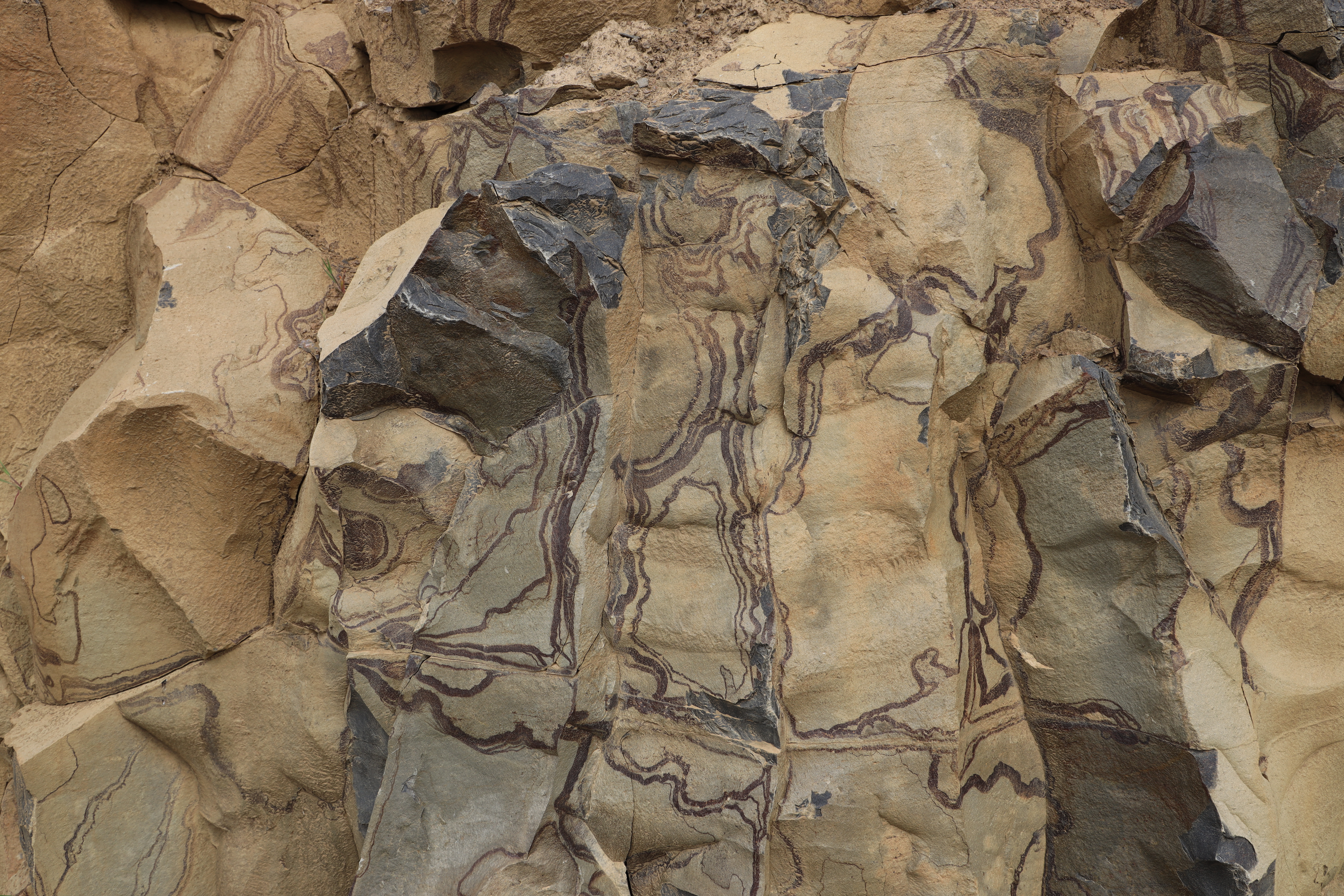 바위에 이상한 줄무늬가 있습니다.